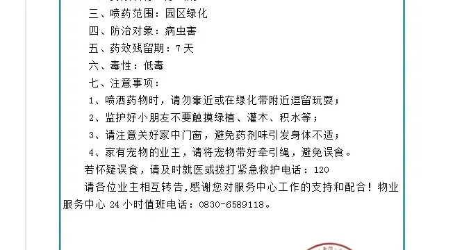 关于小区绿化虫害消杀的通知